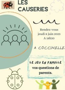 Le 8 juin, « Les causeries » avaient pour thème le jeu en famille. Quoi proposer ? Comment accompagner son enfant ? La participation, les règles, le partage, la récupération…. Autant de sujets abordés et discutés qui ont permis aux parents de repartir avec des idées !
