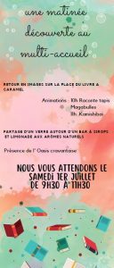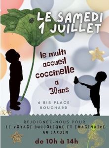Les familles et les partenaires sont invités à venir partager un moment convivial. La structure développe depuis plusieurs années des projets en lien avec la Nature et le développement durable. Des activités et animations seront mis en place dans le jardin ombragé mais aussi des temps de pause autour de la thématique de l’imaginaire.